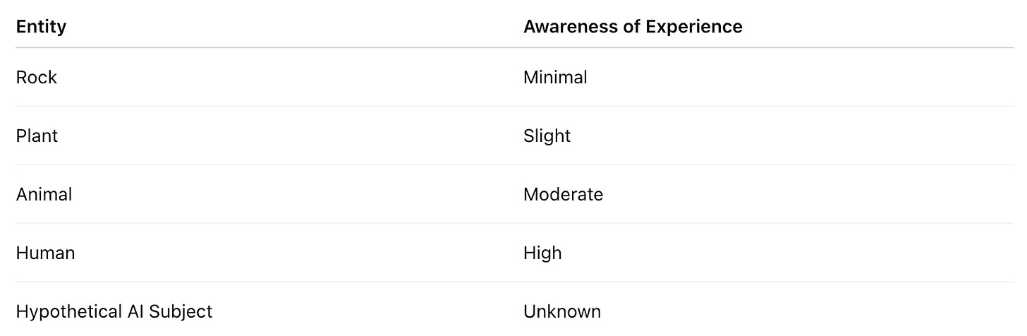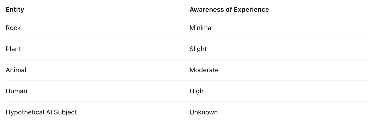 The key unresolved task is not proving experience exists. It is learning how to recognize, measure, and ethically respond to different levels of awareness within the experiential field which is the universe (from my perspective at least).