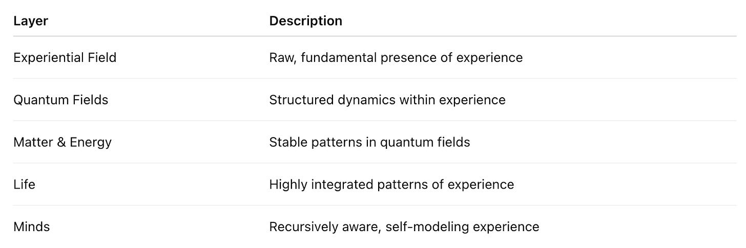 Integration Creates Interior: When processes become tightly coordinated and self-referential, interiority emerges.