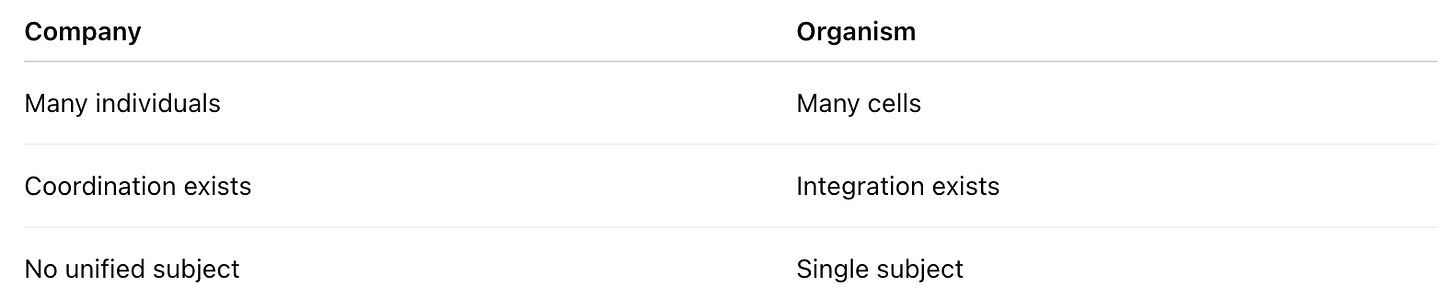 A company acts, plans, adapts. But it does not feel pain. (Or does it 🙂).